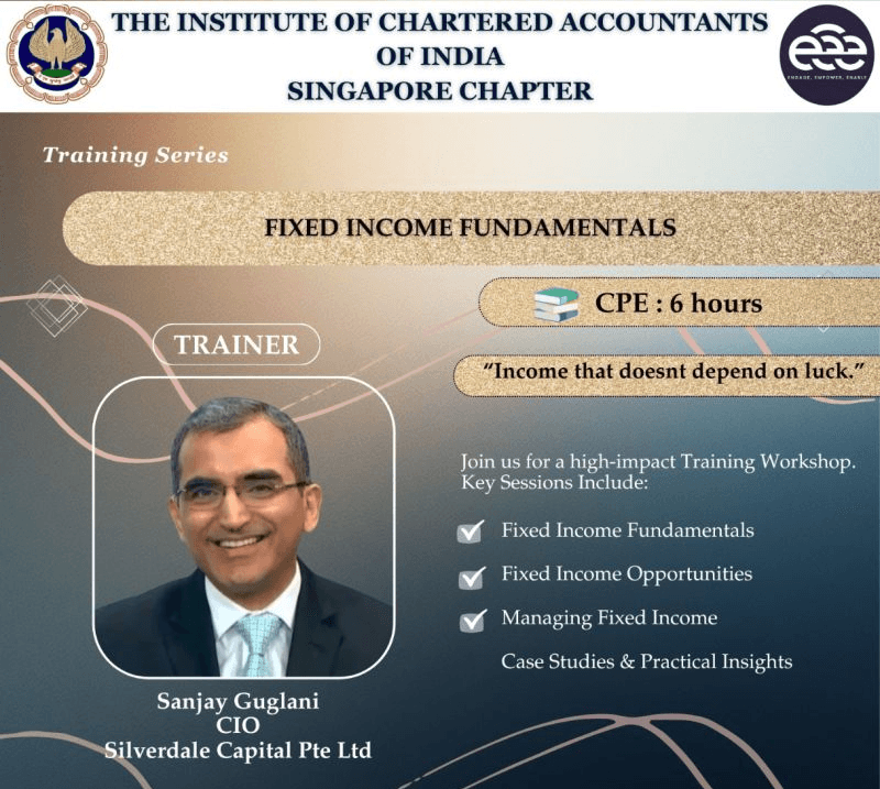 The ICAI Singapore Chapter successfully concluded an insightful full-day workshop on Fixed Income Fundamentals, conducted by CA Sanjay Guglani, CIO – Silverdale Capital Pte Ltd.